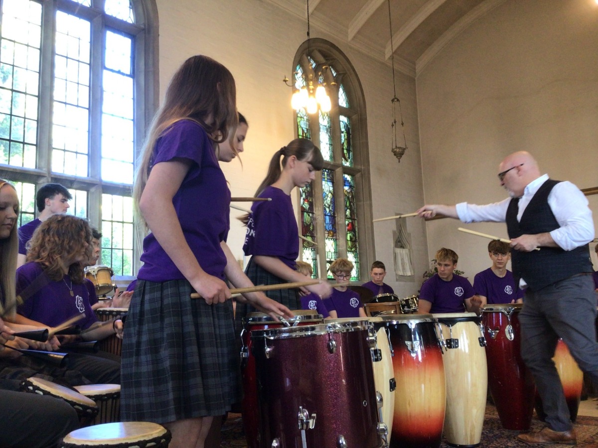 Last Sunday afternoon, the award-winning Highcliffe Percussion Ensemble performed as part of the annual Harvest Service, which this year supported the New Forest Basics Bank. Our talented Highcliffe students were first spotted by council officials during the New Milton Music Festival in the spring term, where they won their class with honours and took home a trophy.