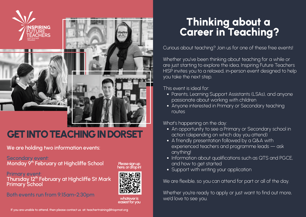 To find out more about training with IFT at the Dorset Hub Inspiring Future Teachers - HISP Teacher Training